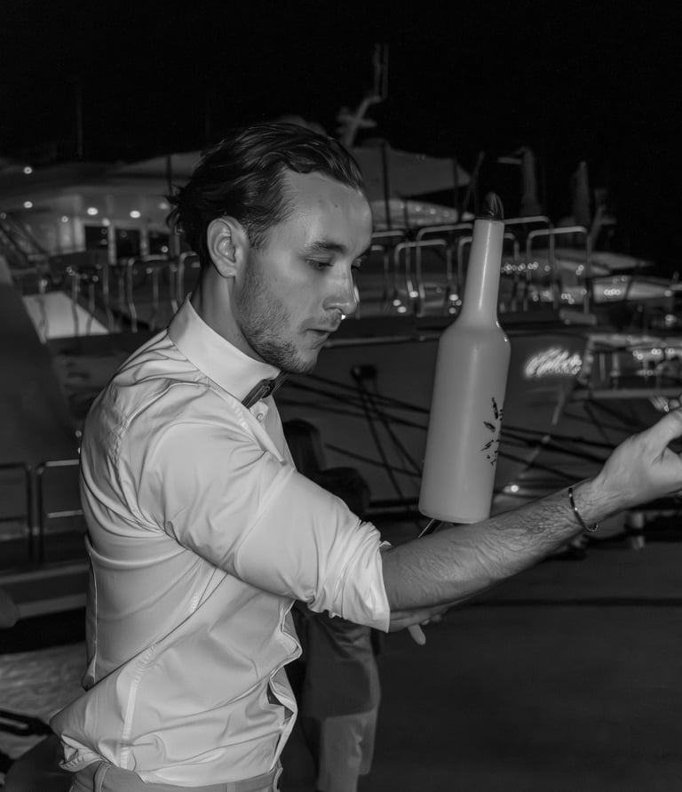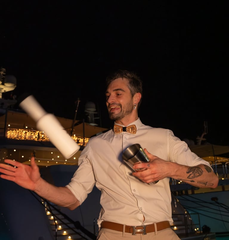 Jérôme organise et coordonne la présence de flair bartenders professionnels pour créer un véritable show autour du bar.